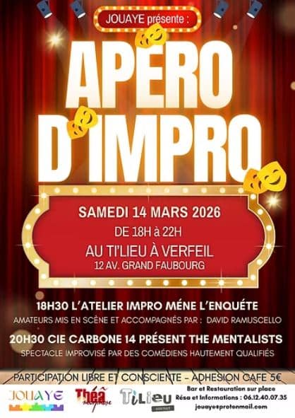 Ouvert à toutes et tous, cet événement invite chacun·e à partager un moment convivial autour de l’improvisation. Deux spectacles, deux ambiances, et beaucoup de rire.