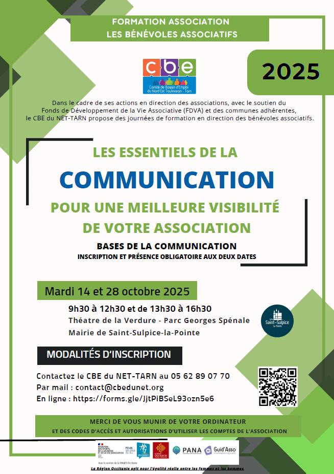 Le CBE du NET-TARN propose deux journées de formation en direction des bénévoles associatifs pour une meilleure visibilité de l’association.