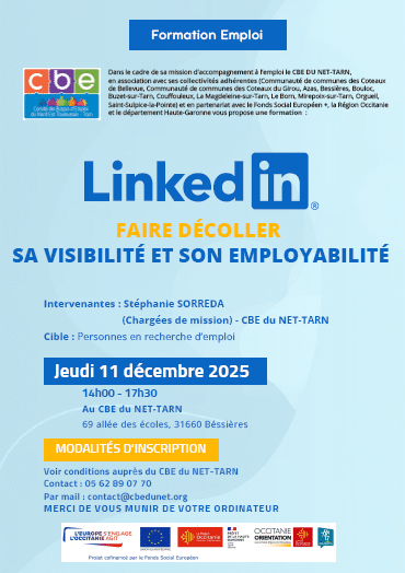 Le CBE du NET-TARN propose une formation pratique dédiée à l’utilisation de LinkedIn, pour apprendre à valoriser son profil et faire décoller sa visibilité et son employabilité.