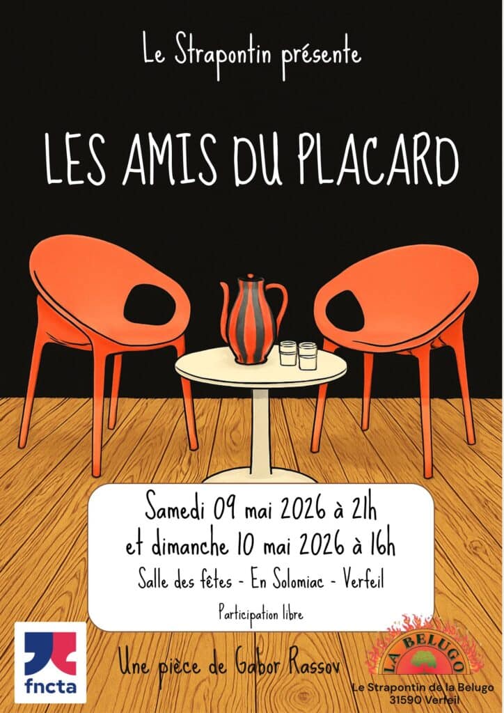 Le Strapontin (Verfeil, 31) a été créé en 1978 dans le cadre de l’Association Culturelle locale « La Belugo ». Son objectif est de promouvoir un théâtre de qualité autant par la création et la représentation de spectacles que l’organisation avec « La Belugo » et des membres de la FNCTA d’un festival « Les Théâtrales de Verfeil » qui a lieu chaque année depuis 1993 pendant le week-end du 11 novembre.