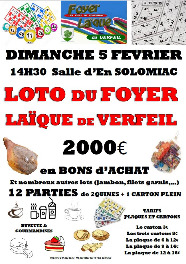 Le Foyer Laïque de Verfeil organise un loto, un rendez-vous convivial et intergénérationnel ouvert à tous.